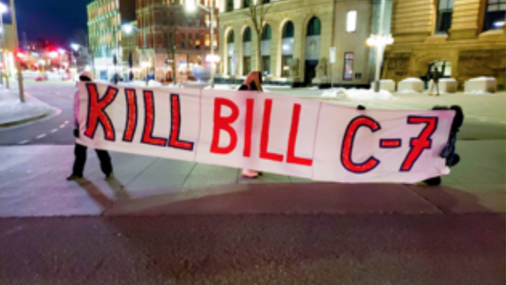 Bill C-7 expands Medical Assistance in Dying (MAiD) to disabled people regardless of their proximity to death. Disabled people and their allies fought to kill Bill C-7. Last week, three UN Special Rapporteurs unanimously condemned Bill C-7, noting that “Such legislative provisions would institutionalize and legally authorize ableism, and directly violate the UN Convention on the Rights of Persons with Disabilities.”